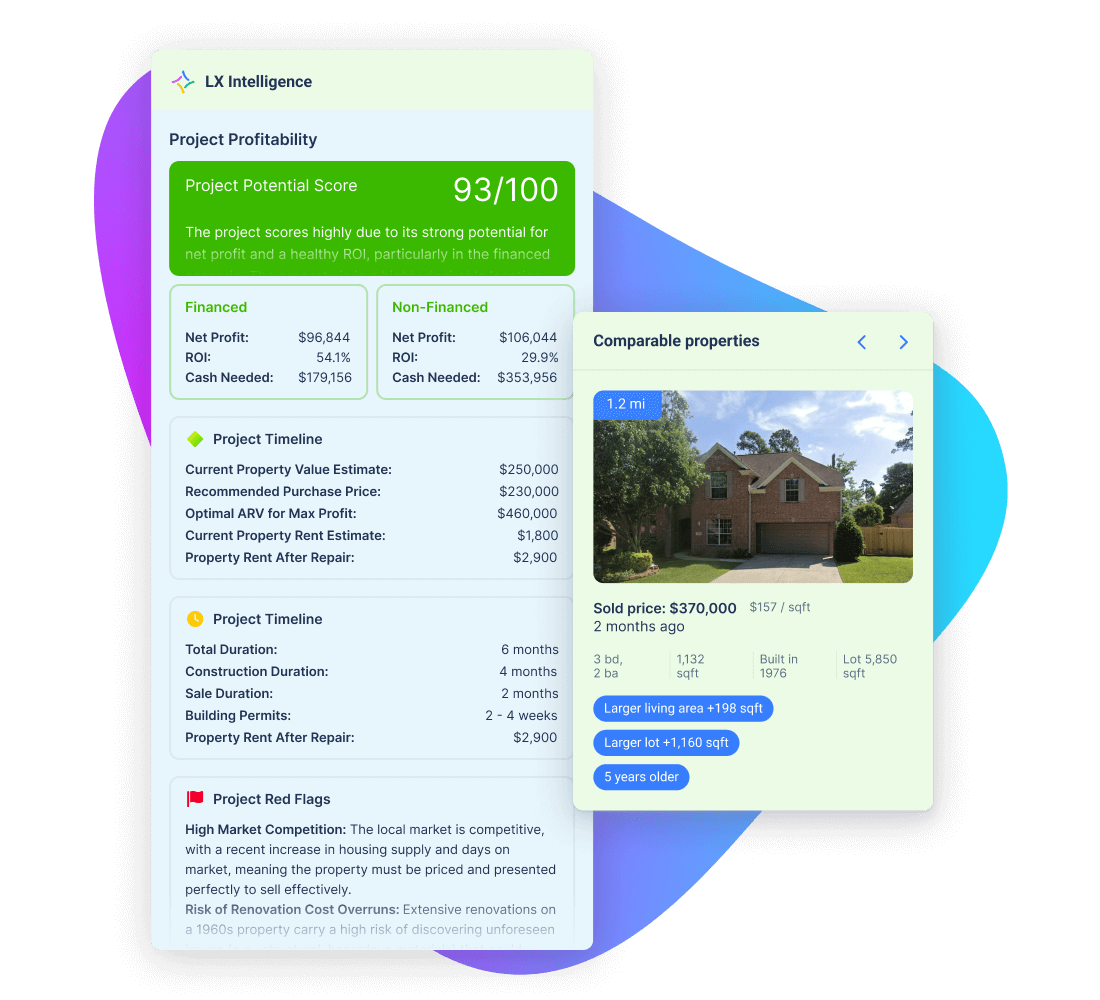 Create your real estate project to begin reviewing data in a few simple clicks. Evaluate property and market data to validate assumptions with the help of verified information and AI-powered LX Intelligence